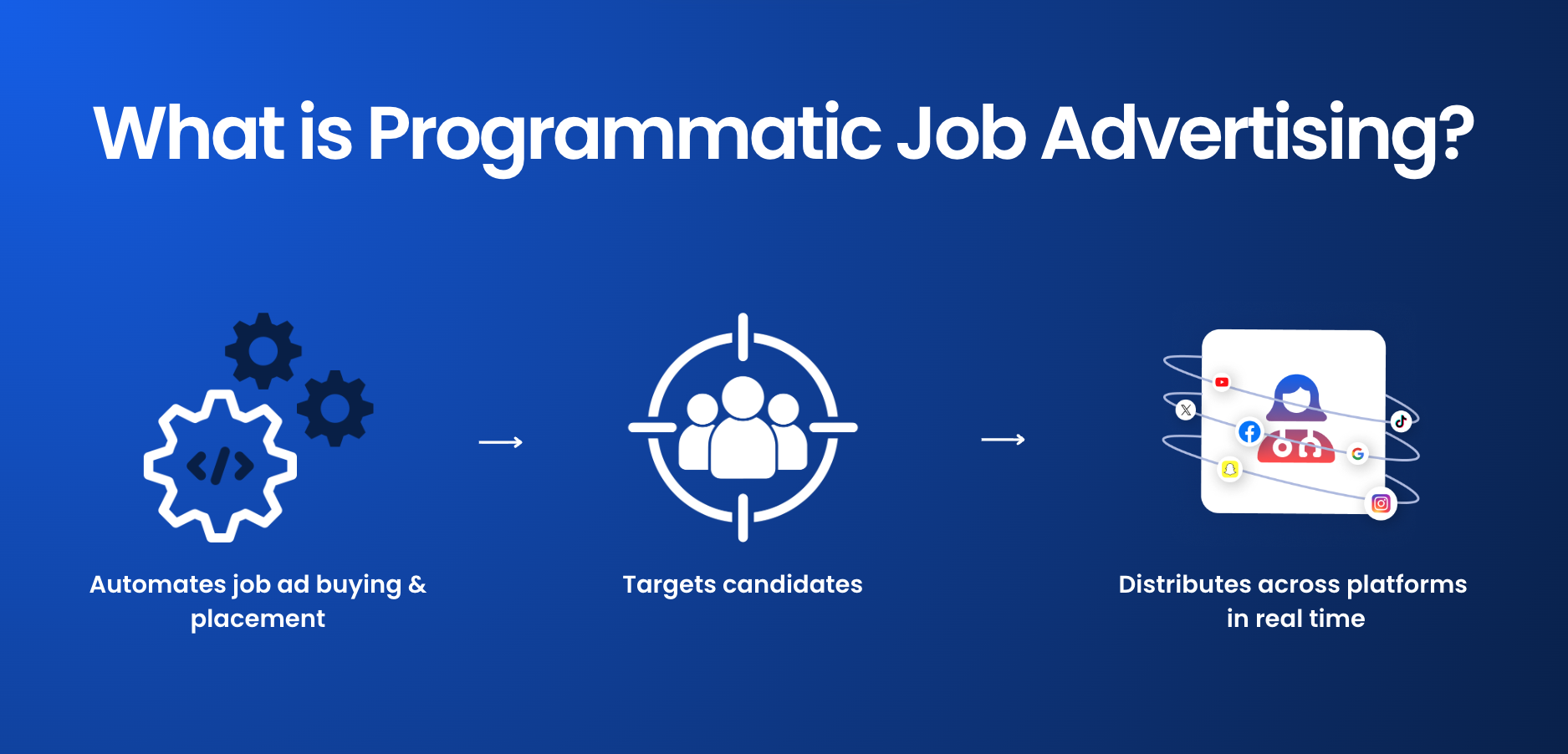 With programmatic, your ads are distributed across multiple platforms in real time, from job boards to social media channels. Behind the scenes, algorithms ensure your ads reach the most relevant candidates, improving both efficiency and targeting.